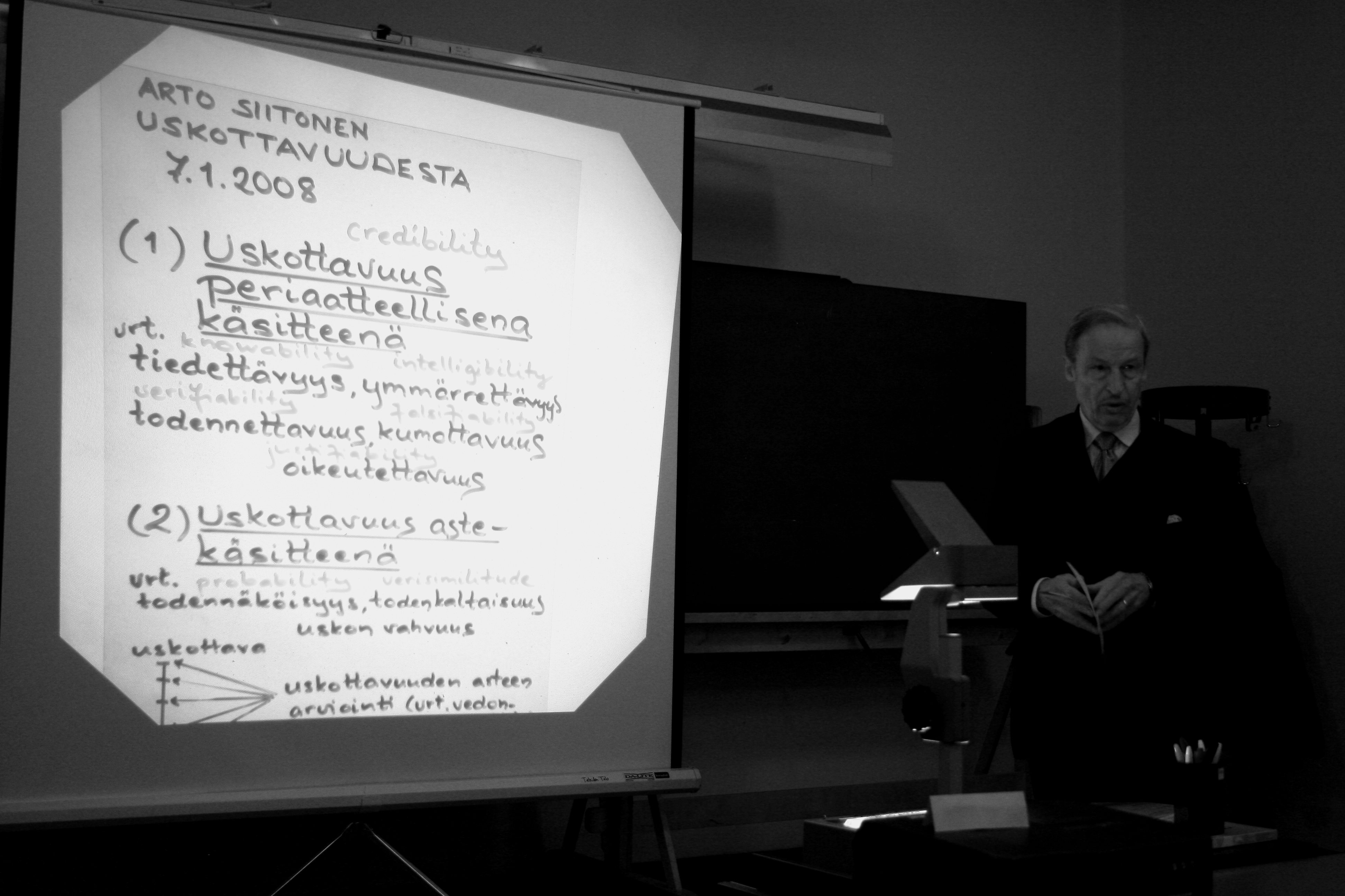 Arto Siitonen vid Filosofiska Föreningen i Finlands kollokvium vid Tieteidentalo 2008.